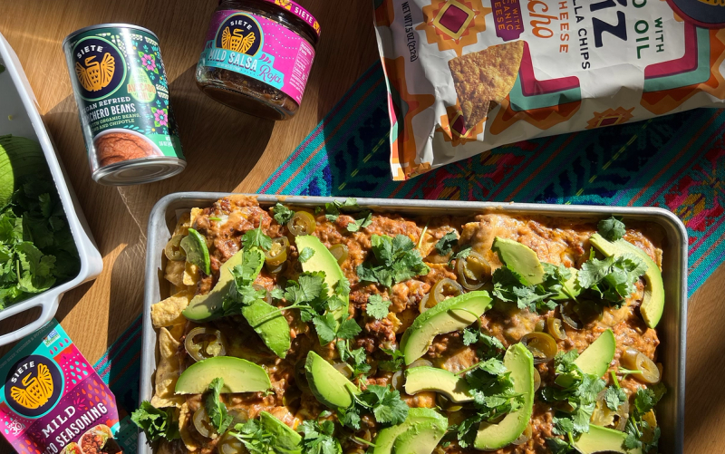 Game day just got a whole lot cheesier! These Sheet Pan Nachos are our ultimate crowd-pleaser, perfect for feeding your crew while cheering on your favorite team. We start with our Three Cheese Maíz Corn Tortilla Chips—made with a blend of organic cheddar, Parmesan, and Romano—then pile on seasoned ground beef, refried beans, queso, salsa, and even more melted cheese. The result? A loaded nacho platter that's impossible to resist. ¡Buen Provecho!